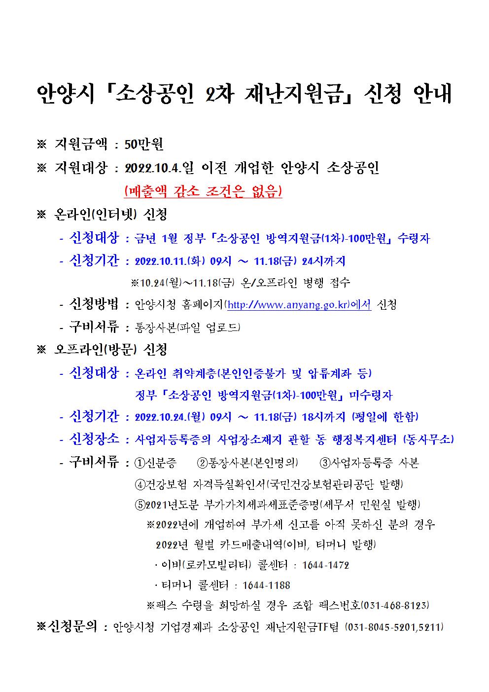 안양시 소상공인 2차 재난지원금 신청 안내