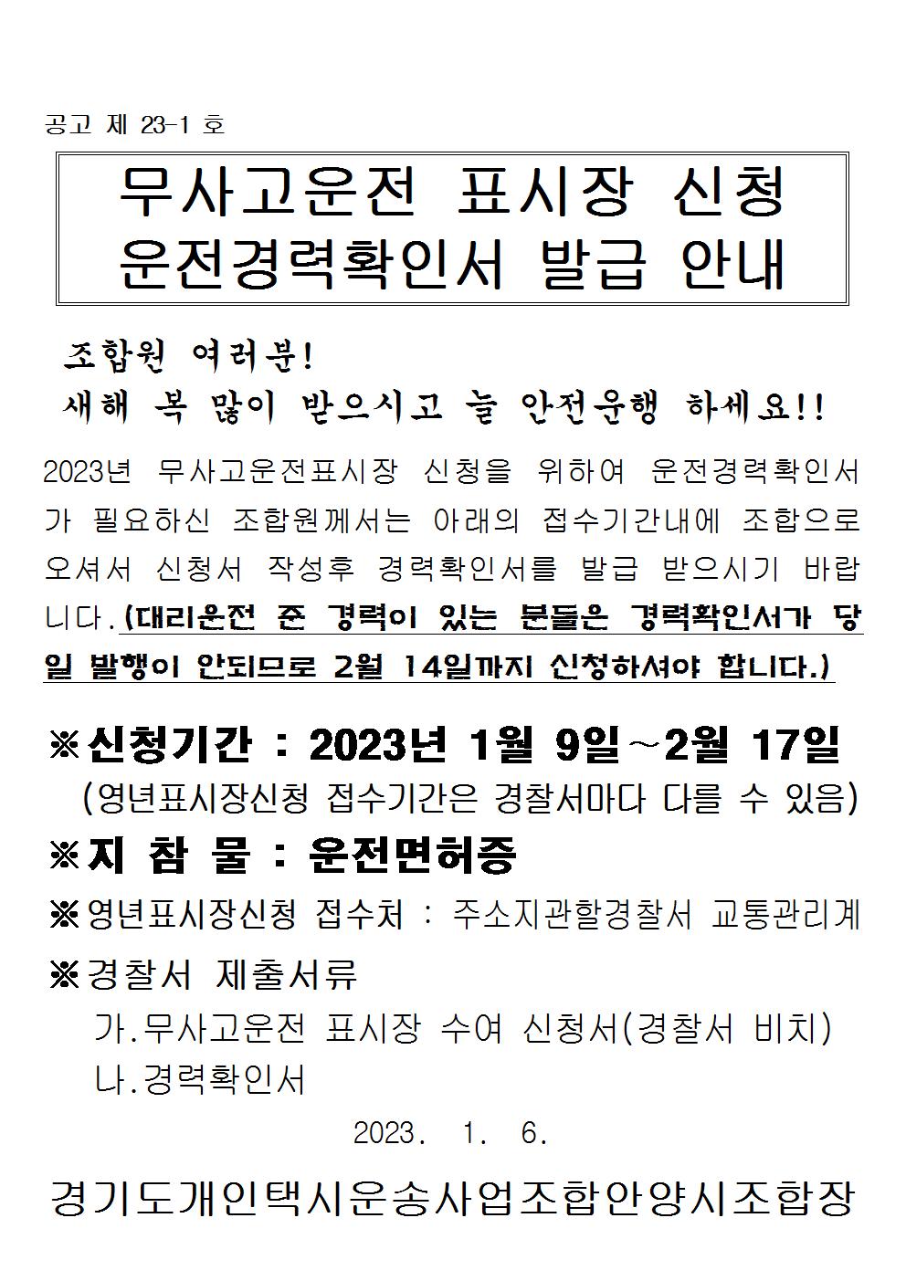 무사고운전 표시장 신청안내