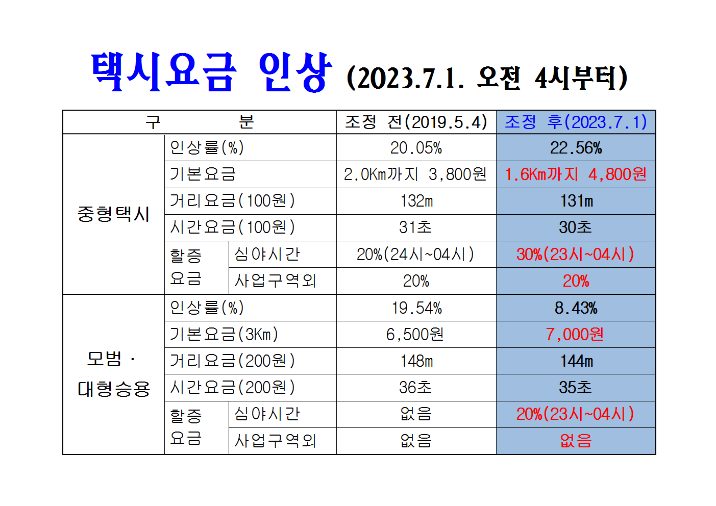 택시요금 인상 (2023.7.1. 04시부터)