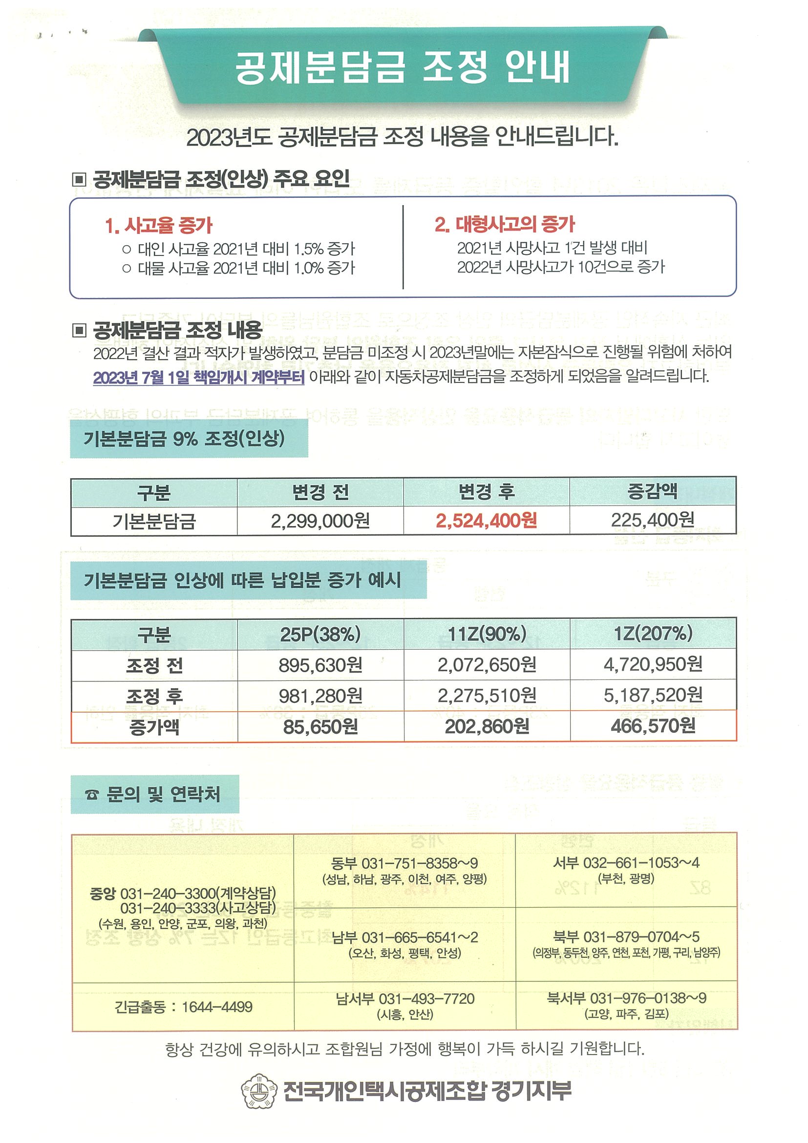 공제조합 보험료 인상안내(2023.7.1일 계약개시부터 적용)
