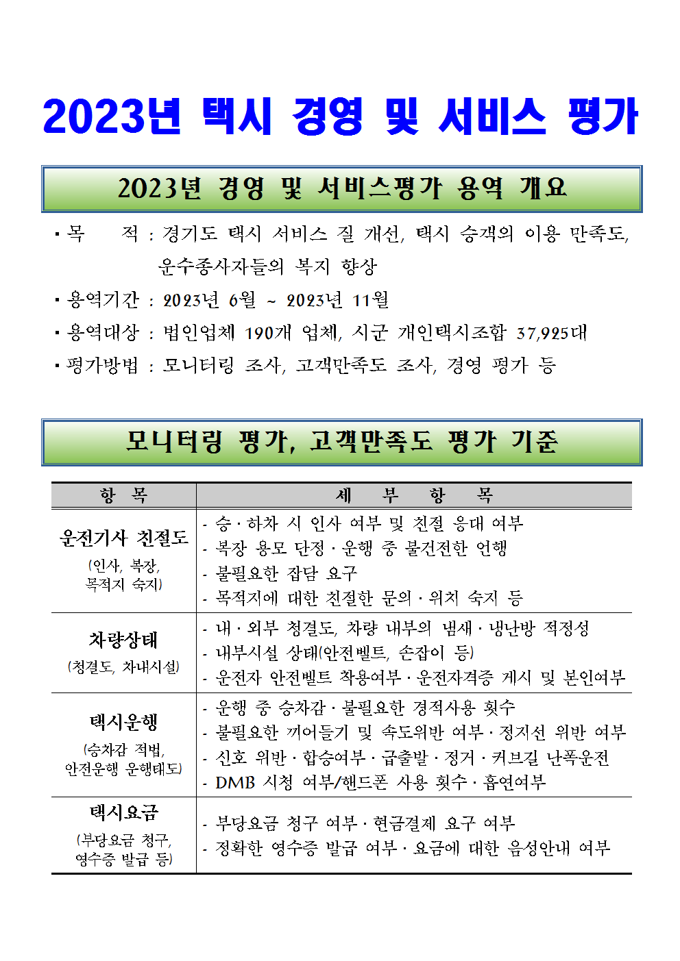 2023년 택시 경영 및 서비스 평가