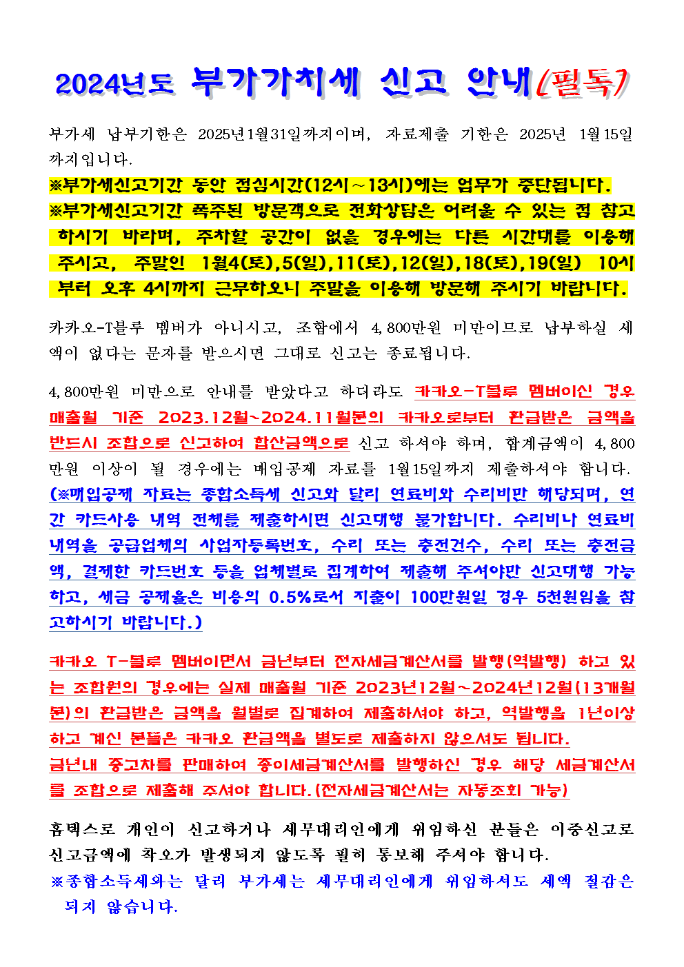 부가가치세신고 안내