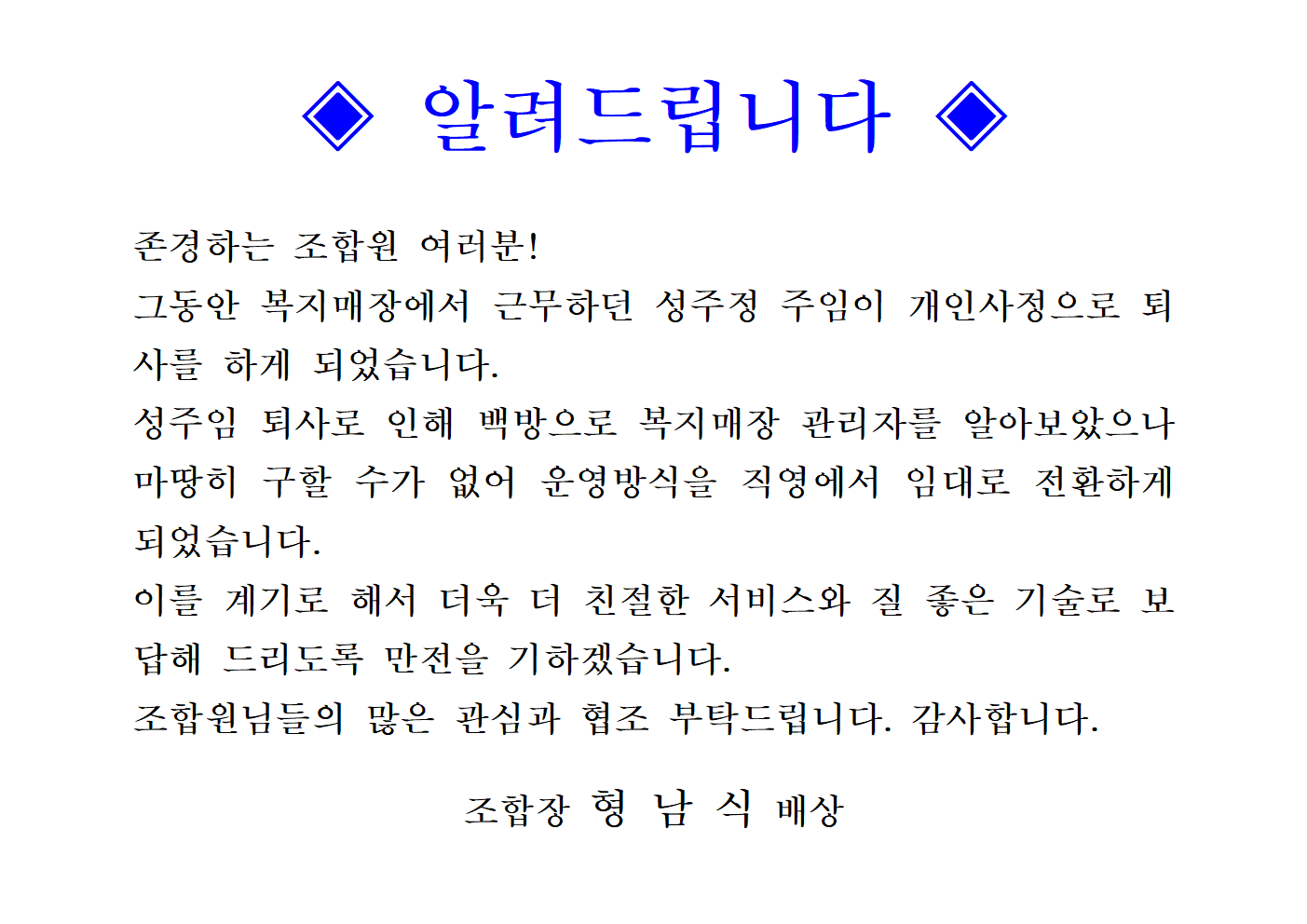 조합원이 편한 조합, 안정 속에 개혁하는 조합