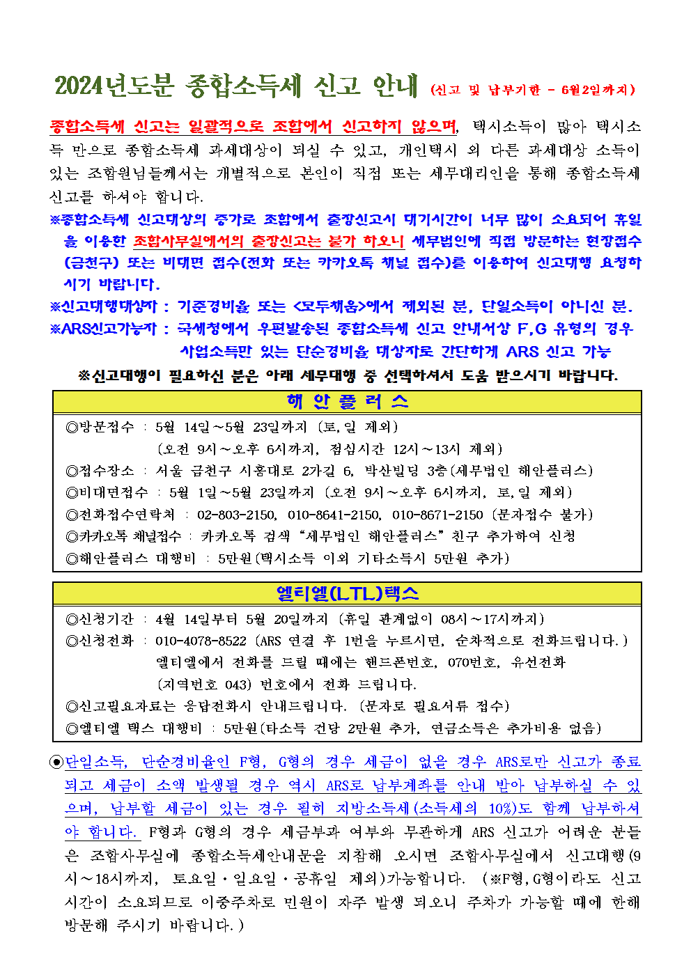 2024년도분 종합소득세 신고안내