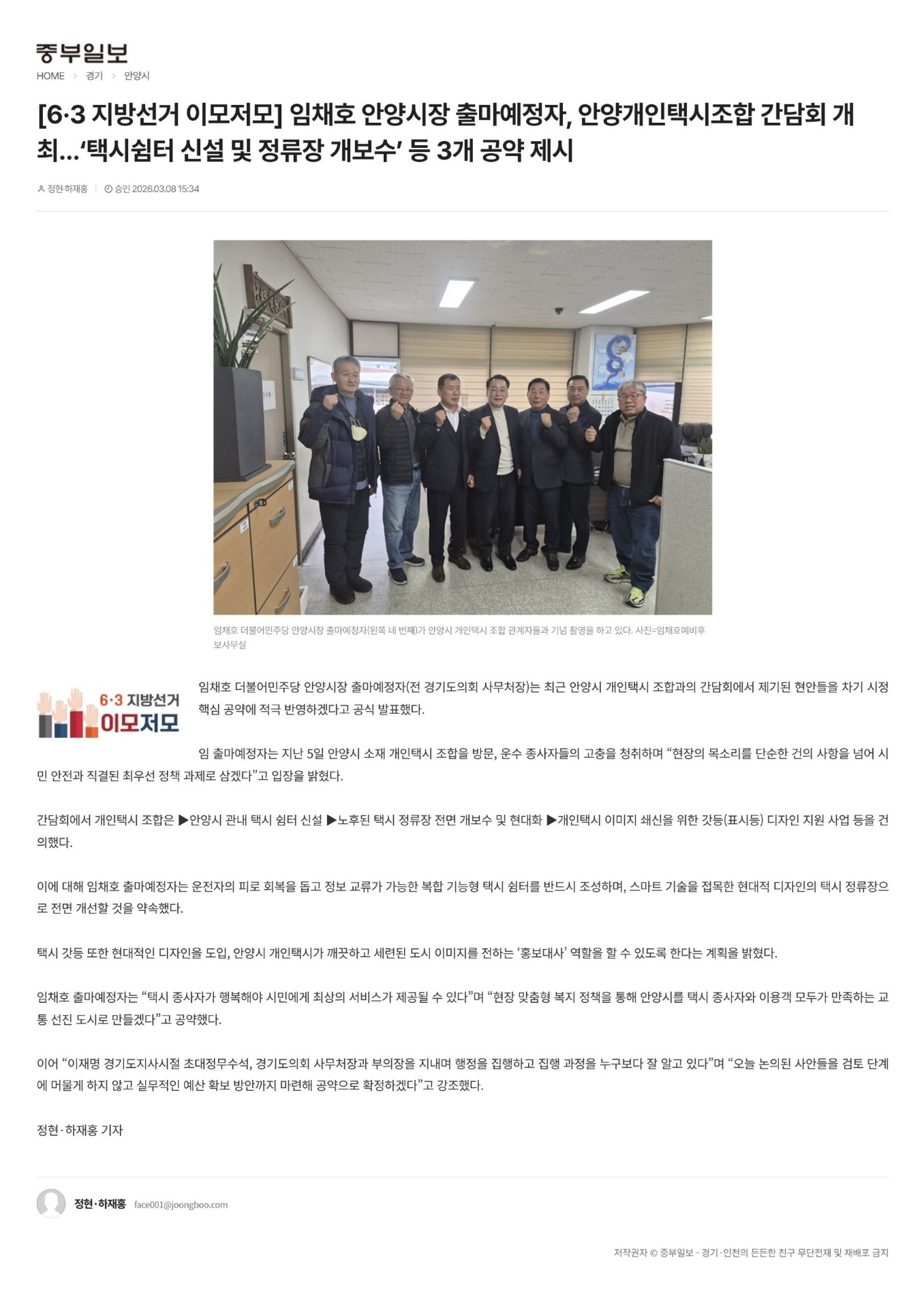 안양시장 출마 예정자 임채호 간담회(택시쉼터 신설 및 정류장 개보수 등) 공약 제시
