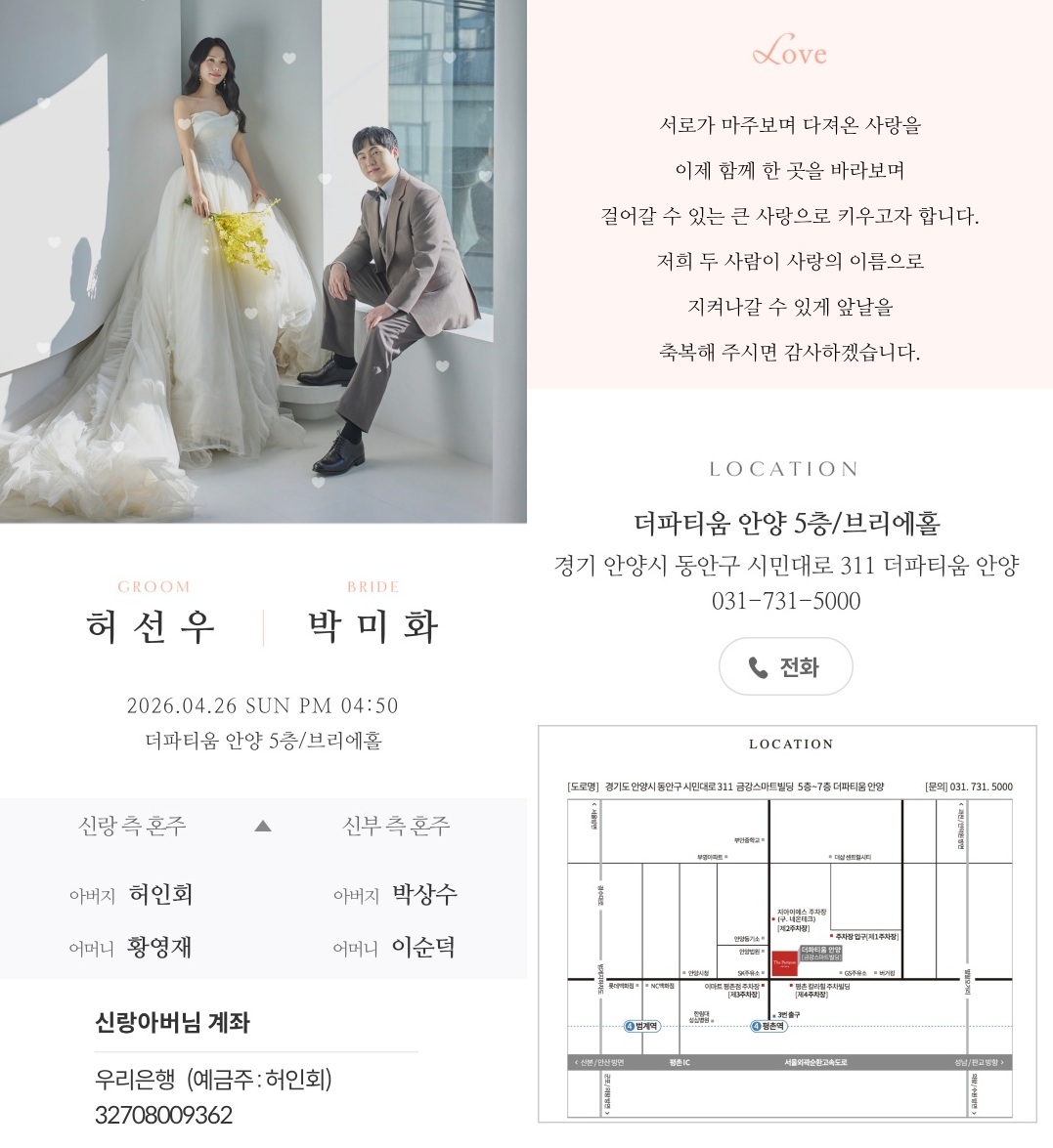 04월26일 자녀결혼(경기35바4935호 허인회)