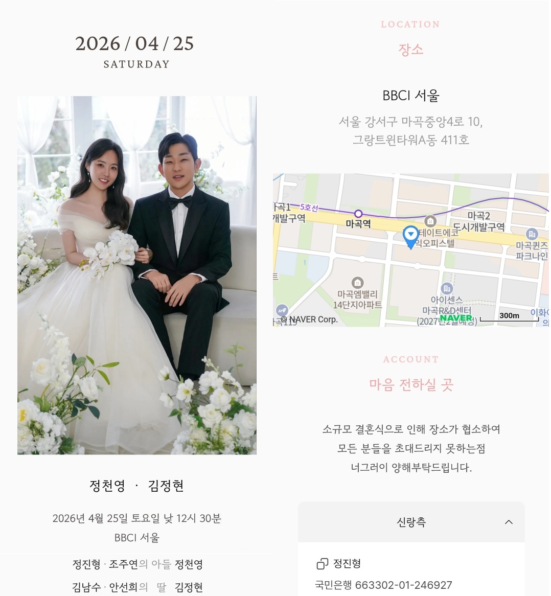 04월25일 자녀결혼(경기35바5691호 정진형)